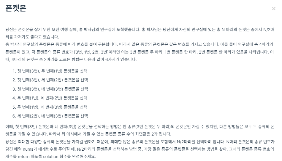 구현은 중복을 지우는 set를 써서 포켓몬 종류를 구한 뒤